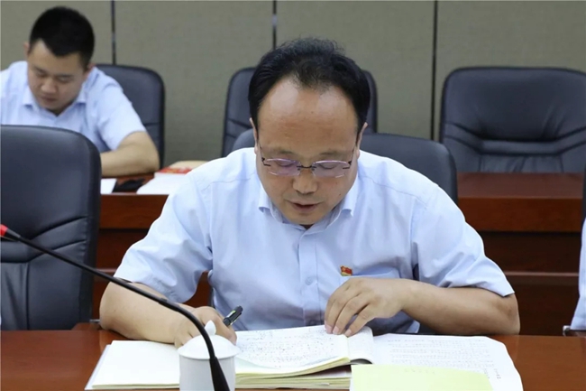 西鳳股份公司副總經理盧軍賢領學市國資委黨委《關于轉發(fā)中共寶雞市委、市政府辦公室<關于在全市開展向張富清同志學習活動的通知>》的通知