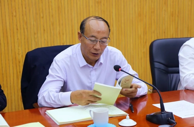 西鳳集團(tuán)公司黨委副書記、總裁張力領(lǐng)學(xué)《習(xí)近平關(guān)于“不忘初心、牢記使命”論述摘編》第四章:《堅(jiān)定理想信念,始終是共產(chǎn)黨人安身立命的根本》