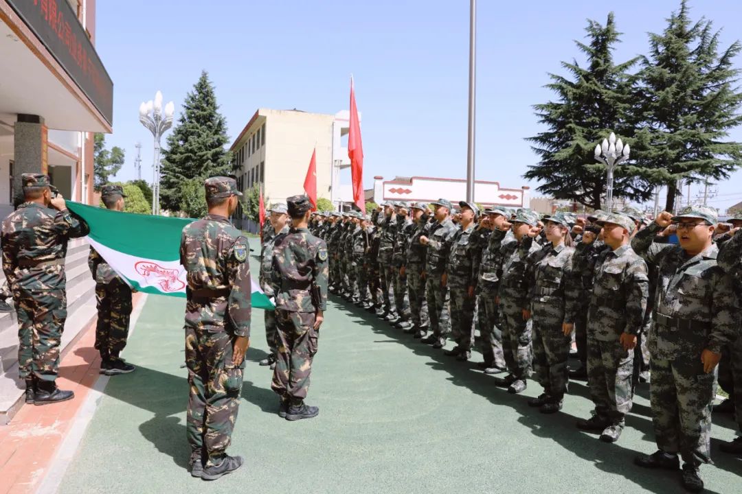 馮雅芳向各參訓(xùn)連隊(duì)授旗,紫荊山綜合實(shí)踐基地主任曹晉凱致歡迎詞,西鳳股份公司基酒管理中心主任邢鋼宣讀軍訓(xùn)方案,學(xué)員代表沈曉亮作表態(tài)發(fā)言,全體參訓(xùn)學(xué)員莊嚴(yán)宣誓。