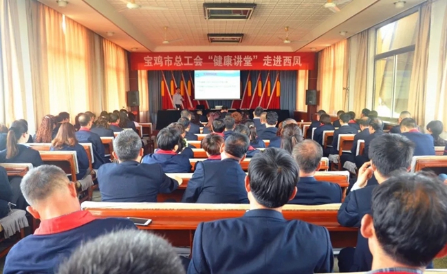 5月15日,寶雞市總工會(huì)組織帶領(lǐng)寶雞市中心醫(yī)院、寶雞市中醫(yī)醫(yī)院資深臨床專業(yè)醫(yī)師來西鳳集團(tuán)公司,在辦公樓五樓會(huì)議室舉辦了一場(chǎng)別開生面的“健康講堂”。各分會(huì)110多名職工代表聆聽了講座。西鳳集團(tuán)公司工會(huì)主席陳軍紅主持活動(dòng)。