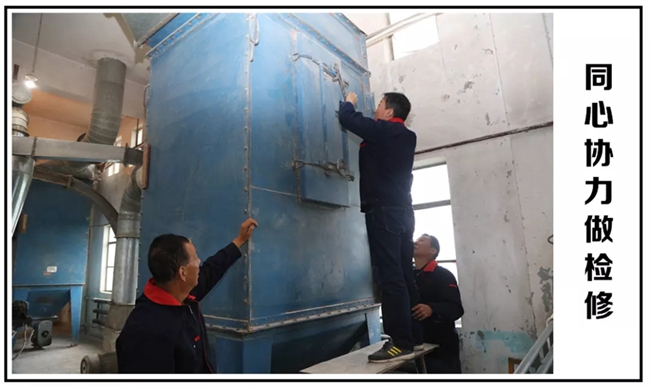為了保證生產(chǎn)的正常進行,粉碎班技術(shù)骨干積極響應(yīng),主動放棄五一休假時間,自發(fā)組織了32人的檢修小組。他們根據(jù)設(shè)備現(xiàn)狀,制訂了詳細的檢修計劃,大家分工明確,責(zé)任到人,同心協(xié)力,攻堅克難,經(jīng)過緊張有序地維護和檢修,終于完成了粉碎系統(tǒng)的除塵和布袋更換工作。共更換除塵布袋200多條,提高了設(shè)備的除塵效率,確保了粉碎作業(yè)粉塵排放達到國家環(huán)保要求和標準,確保了制曲生產(chǎn)的順暢進行。