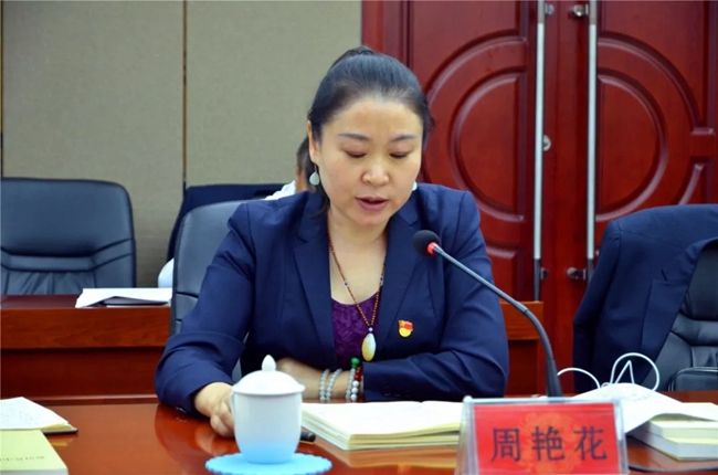 西鳳股份公司副總經(jīng)理、營(yíng)銷(xiāo)管理公司總經(jīng)理周艷花結(jié)合主題教育和紀(jì)律教育學(xué)習(xí)宣傳月“五查五看”要求作討論發(fā)言