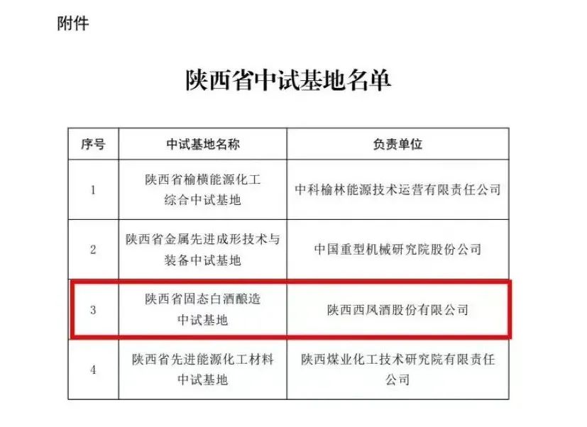 近日,陜西省科技廳公布了首批支持建設(shè)的省級(jí)中試基地名單,陜西西鳳酒股份有限公司“陜西省固態(tài)白酒釀造中試基地”項(xiàng)目成功獲批并獲得建設(shè)經(jīng)費(fèi)500萬(wàn)元。
