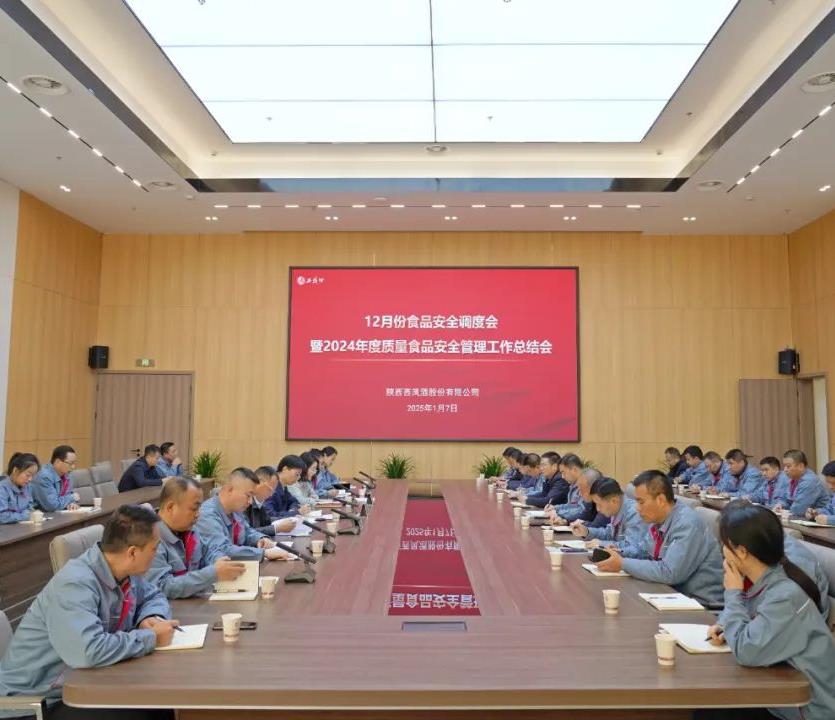 1月7日,西鳳股份公司召開12月份食品安全調度會暨2024年質量食品安全管理工作總結會。西鳳股份公司總經理張周虎、副總經理王厚斌、質量食品安全相關單位負責人參加會議,會議由西鳳股份公司副總經理、食品安全總監(jiān)高亞蘭主持。會議通報了12月份食品安全和主體責任落實情況,梳理了2024年質量管理重點工作,總結了品質提升及質量強企工作成果,分享了質量創(chuàng)新和品質提升工作經驗,安排部署了2025年質量食品安全管理工作。會上宣讀