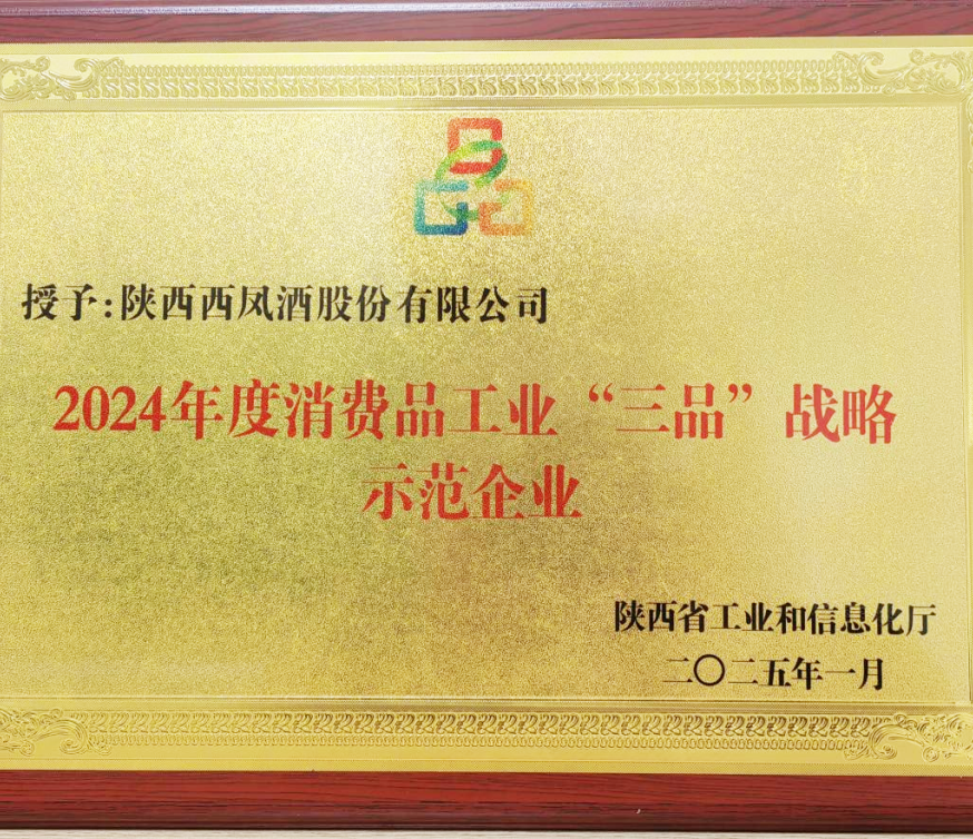 西鳳股份公司榮獲“2024年度消費品工業(yè)三品戰(zhàn)略示范企業(yè)”稱號
